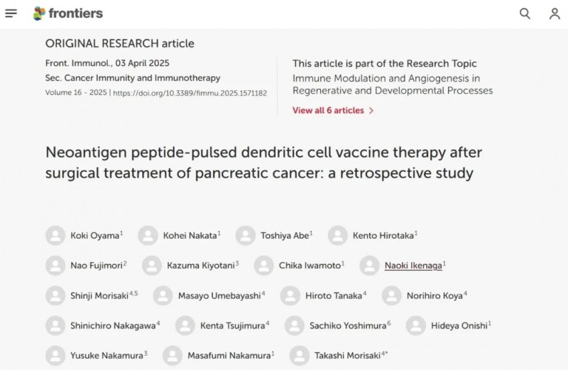 2025年4月,《癌症免疫与免疫疗法》发表的一项回顾性研究,评估了胰腺癌患者术后接受新抗原肽脉冲树突状细胞(Neo-P DC)疫苗疗法的安全性与有效性。