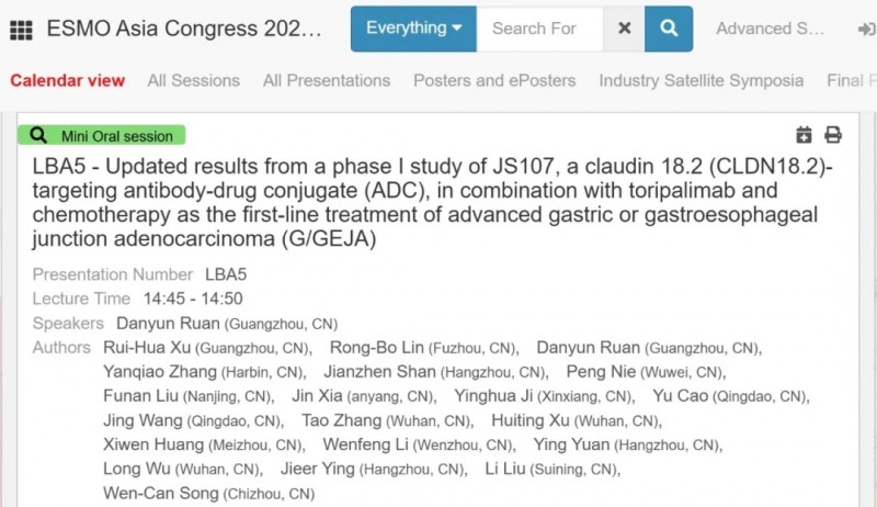 近日,2025年欧洲肿瘤内科学会亚洲年会(ESMO Asia 2025)公布最新突破性摘要(LBA),君实生物旗下CLDN18.2ADC药物JS107联合PD-1药物toripalimab及化疗,用于晚期胃癌/胃食管交界处腺癌一线治疗的临床数据正式亮相。