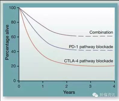 这是一张PD-1和CTLA-4连用的效果想象图,根据的是黑色素瘤的数据。