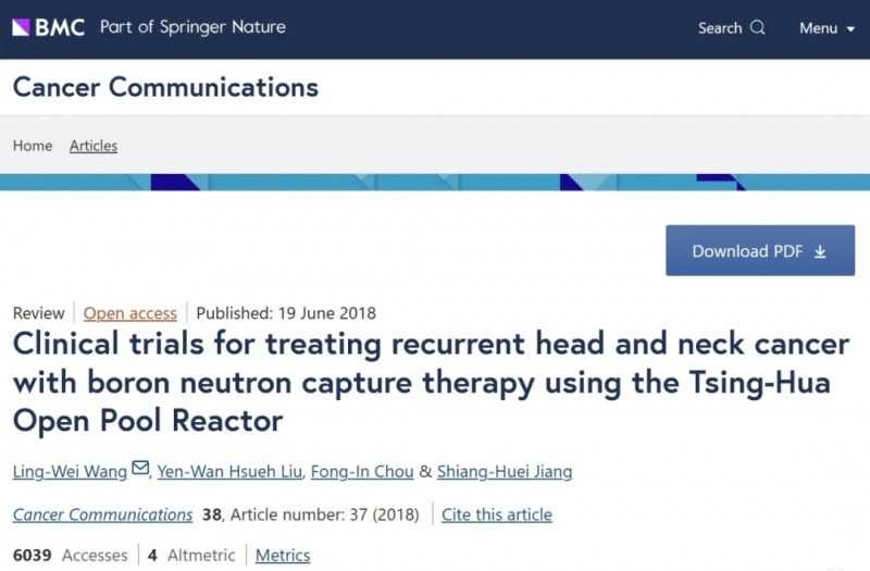 [1]Wang L W, et al. Clinical trials for treating recurrent head and neck cancer with boron neutron capture therapy using the Tsing-Hua Open Pool Reactor[J]. Cancer Communications, 2018, 38(1): 37.