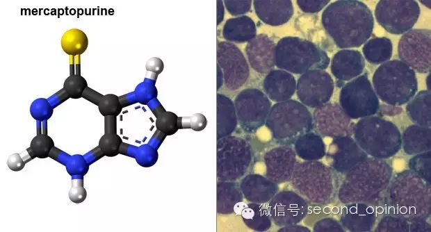 2014年4月28日,FDA批准口服的巯嘌呤混悬剂(Purixan)用于治疗急性淋巴细胞白血病(ALL),作为联合治疗方案的一部分。图片来源:Furfur, Wikimedia Commons(右)。