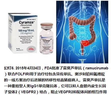 2014年4月21日,FDA批准ramucirumab(Cyramza)单药治疗在先前的含氟嘧啶或铂类的化疗方案治疗中或治疗后疾病进展的晚期或转移性胃癌或胃食管交界处(GEJ)腺癌。图片来源:礼来(左)。