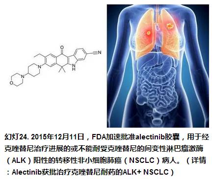 2014年4月29日,FDA加速批准色瑞替尼(Zykadia)用于治疗使用克唑替尼后疾病进展或不耐受的ALK阳性、转移性非小细胞肺癌(NSCLC)。