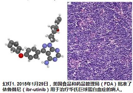 2014年2月12日,FDA加速批准依鲁替尼(Imbruvica)用于治疗之前至少接受过一种治疗的慢性淋巴细胞白血病(CLL)。