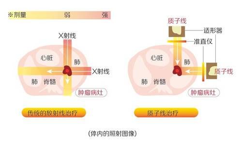 质子具有Bragg峰的物理特性,使峰值部位对准肿瘤病灶处,剂量利用率高