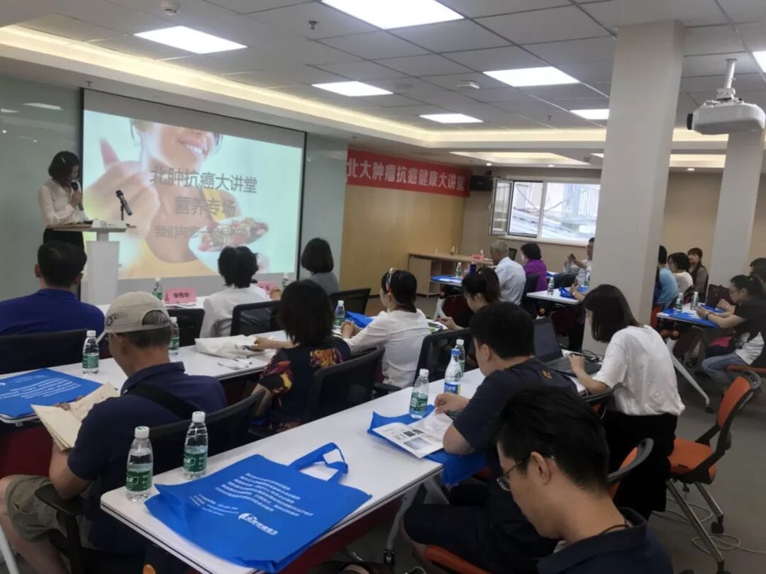 2018年6月16日,全球肿瘤医生网联合北京迦南门诊(北京大学肿瘤医院专家咨询中心)举办的第三期抗癌健康大讲堂——与大家共同分享主题为:肿瘤患者营养解密-放化疗患者如何调节饮食的讲座。交流会特别邀请北京大学肿瘤医院临床营养科方玉主任主讲癌症患者到底该如何保证营养,邀请全球肿瘤医生网医学部总监王立宏博士介绍国家抗癌新技术,邀请迦南门诊健康管理部李秀华主任,与大家分享如何做好健康管理方面。讲者的精彩分享令大家获益良多,现场气氛高涨,再次激起了患者们战胜癌症的决心与勇气!同时,也引起各位癌症患者的家属对健康管理的高度重视。