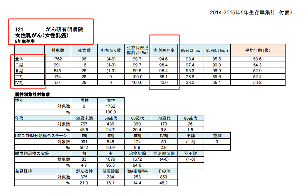 根据日本癌研有明病院官网的数据,乳腺癌手术后生存曲线在不断提高。根据公布的最新的数据显示:日本癌研有明病院五年实测生存率高达94.6%,全日本排名第一!