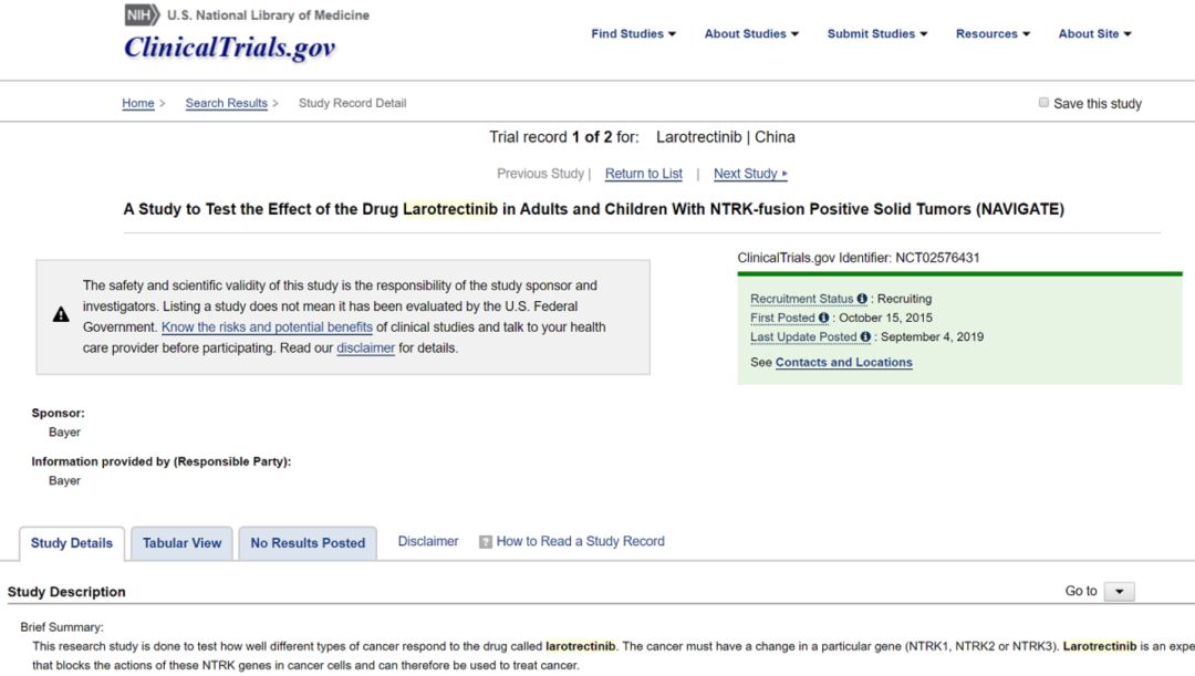 近日,我们在clinicaltrails的官网上看到,目前“治愈系”抗癌药拉罗替尼针对成人实体瘤和儿童实体瘤的两项试验即将在国内开始招募患者了,据业内消息,这项国际多中心的试验中,国内负责招募的医院都在进行最后的伦理审查,相信将很快开始正式的招募工作。